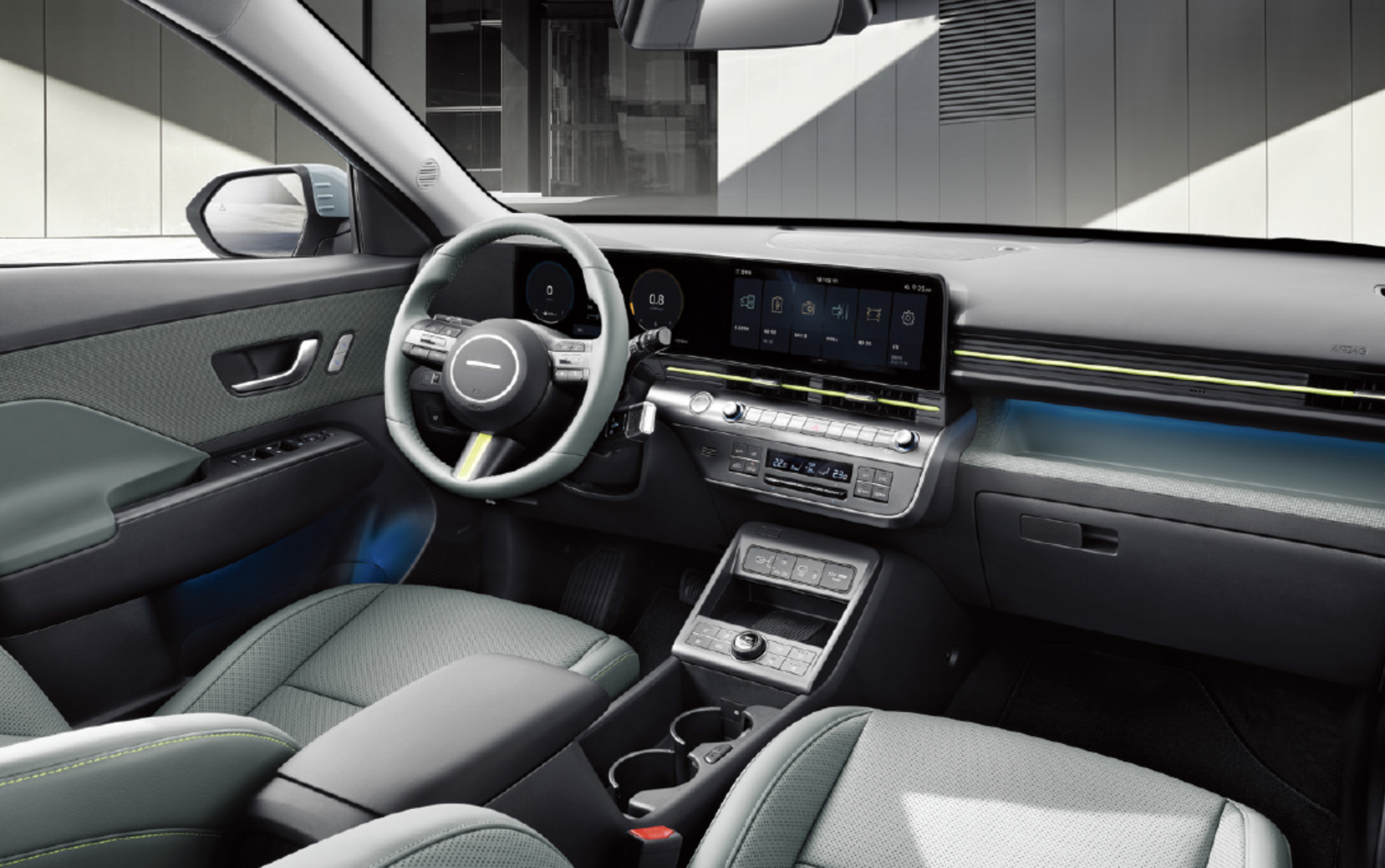 편의 및 안전 품목으로도 신형 현대 코나의 압승입니다. 12.3인치 클러스터 계기판과 동일한 크기의 12.3인치 내비게이션을 한 줄로 통합한 디스플레이와 칼럼식 변속 래버, 1열 컴포트 시트가 탑재되었습니다. 항시 가능한 무선 소프트웨어 업데이트와 인포테인먼트 시스템은 최근 출시된 기아차에도 동일한 옵션입니다. 빌트인 캠과 카페이 연동 하이패스도 적용되었습니다. 또한 차키 없이 운전가능한 디지털키와 스마트 파워 테일게이트 등 각종 편의 사양이 부족함 없이 들어갔습니다.