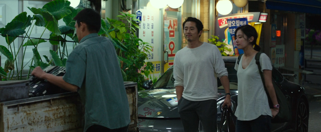 종수의 아버지는 현재 구속되어 재판을 받고 있습니다. 종수의 아버지는 분노조절장애가 있어 공무원 폭행 혐의로 구속되어있습니다. 해미의 귀국날 종수는 기쁜 마음으로 공항에 달려 나갔지만, 해미는 벤과 함께 귀국하는 모습을 보고 당황해합니다. 종수, 해미, 벤은 함께 식사를 하며 이런저런 이야기를 하는 도중, 종수는 벤에게 경계심을 느낍니다. 벤은 종수와 달리 시종일관 여유로운 분위기와 화법을 구사하고 살면서 단 한 번도 눈물을 흘려본 적 없다는 말을 합니다. 종수는 벤에게 무슨 일을 하느냐며 묻는데, 이에 벤은 '노는 것과 일하는 것의 구분이 없다'라고 말합니다. 생계에 빠듯한 종수와는 전혀 다른 삶을 사는 듯한 그에게 종수는 알 수 없는 감정이 생겨납니다. 결국 자신의 낡은 트럭에 비해 벤의 포르셰를 본 종수는 위축되고 맙니다. 그렇게 해미를 벤의 포르셰에 태워 보내게 되고 종수는 그 모습을 바라봅니다.
