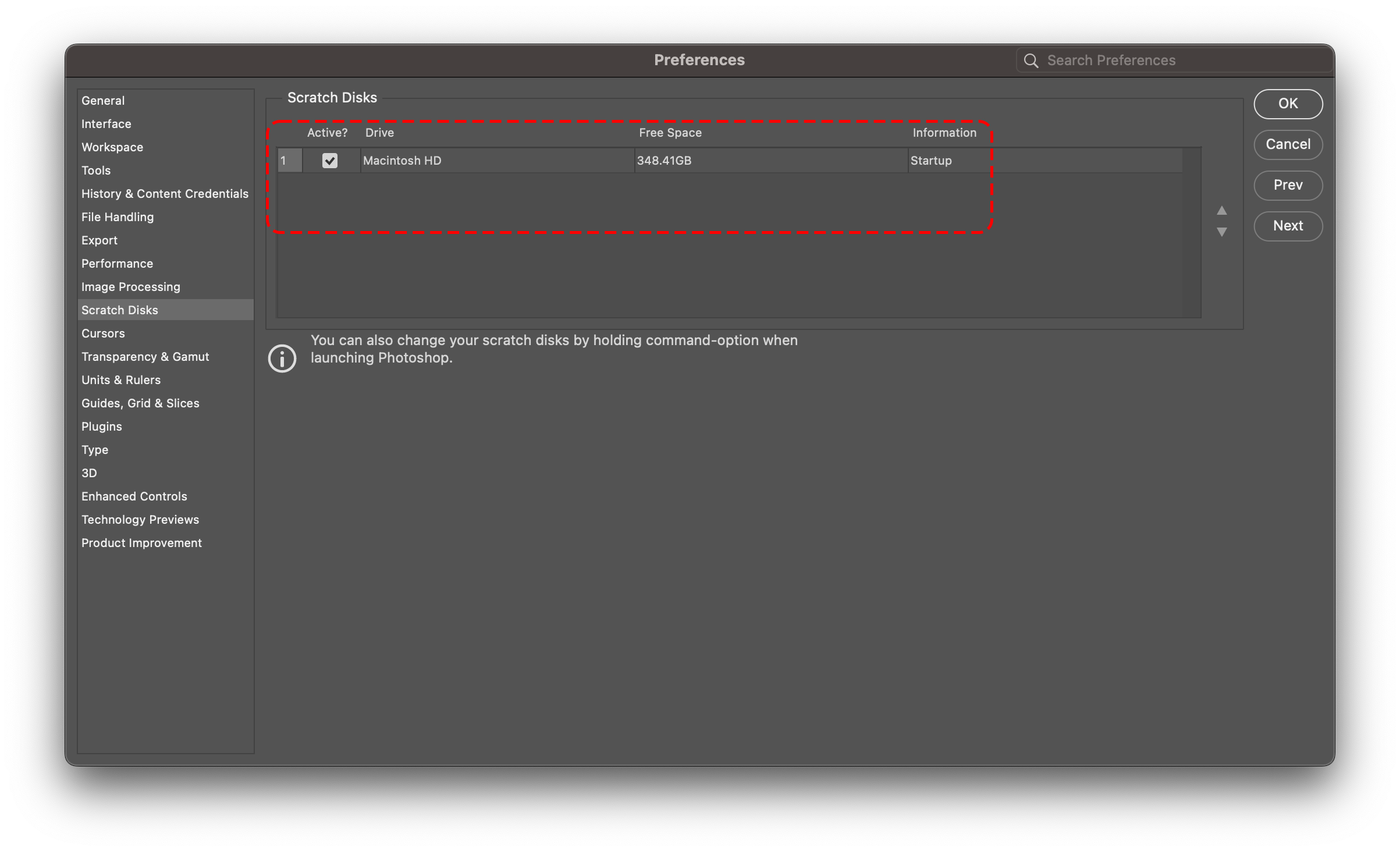 - 스크래치 디스크 설정 : Scratch Disk - 모든 드라이브 '체크'