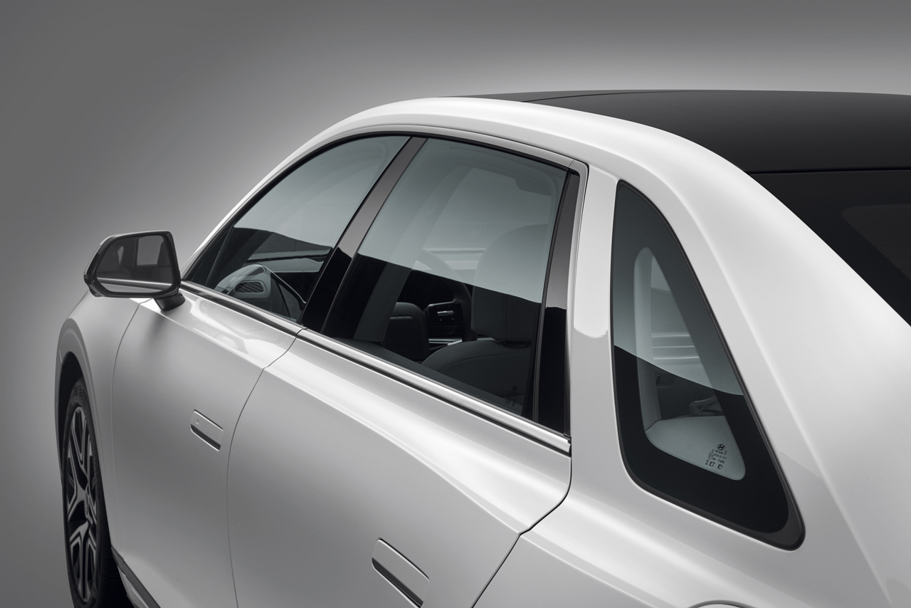 눈에 띄는 특징 중 하나가 길어진 전장과 휠베이스인데, C필러가 후방으로 과감하게 빠져있는 것을 보면, 넓은 2열 공간임을 알 수 있습니다. 자연스럽게 2열 공간에 타고 있는 사장님을 떠올릴 수 있을 것 같습니다. 또한 오페라 글라스는 1세대 그랜저(일명 각그랜저)의 감성을 자극하기 충분합니다.