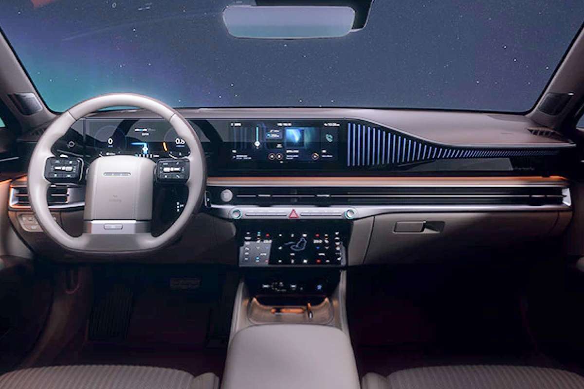스파이샷은 위장막으로 가려졌지만, 유출된 사진을 보면, 실내 정도는 가늠이 가능해 보입니다. 위에 보이는 대시보드로 추측하자면, 이번에 신형 그렌져나 신형 코나에 적용된 확장형 디스플레이가 적용된 것으로 확인할 수 있습니다.