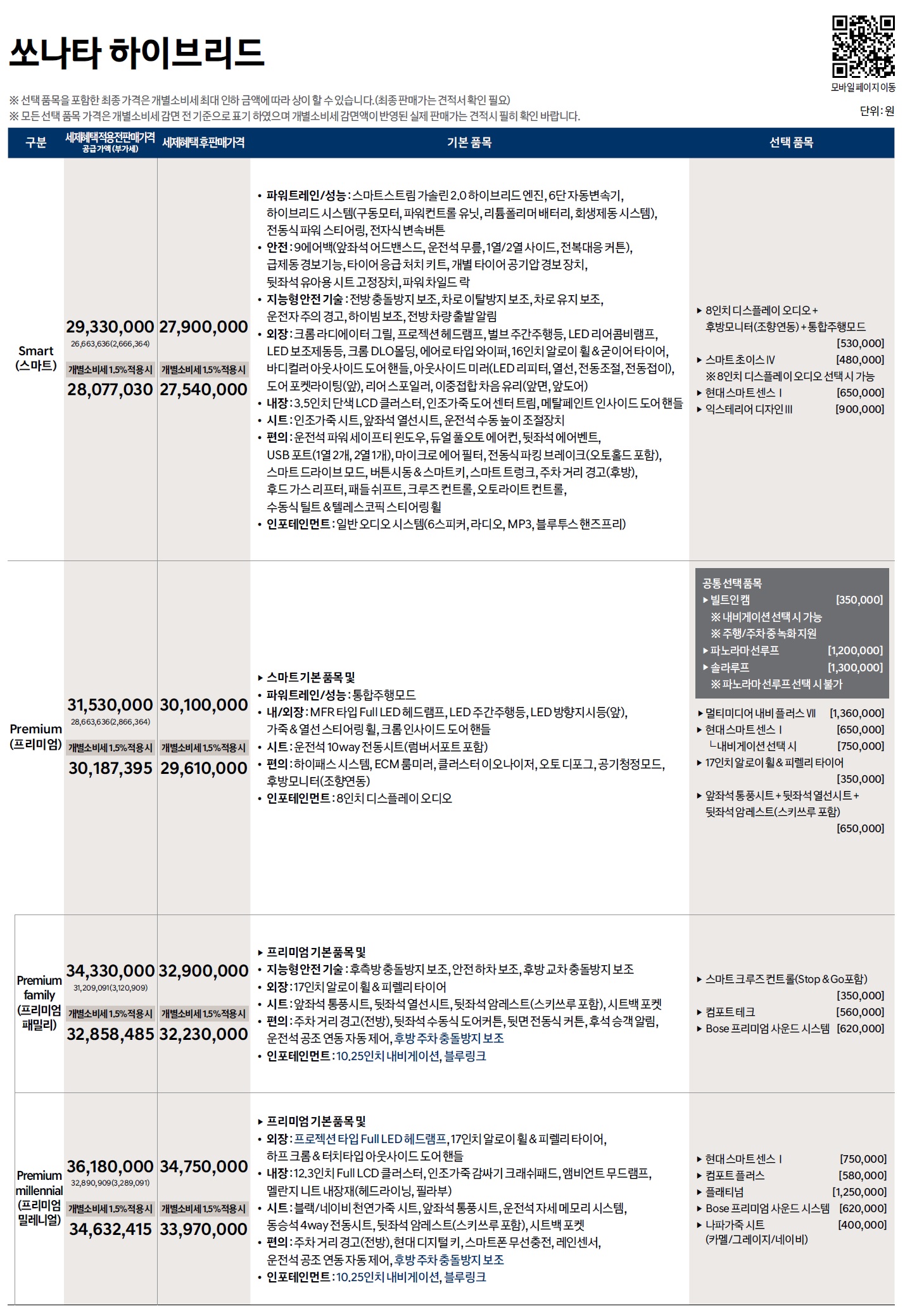 가장 핫한 라인인 1.6 터보 하이브리드는 역시 3,000만 원 전후에 중심을 잡고 가격형성이 돼있을 것입니다.