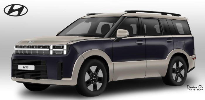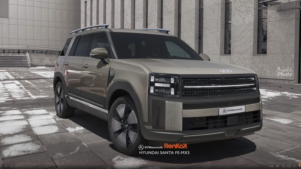 그런데 22년도 3분기쯤 돌기시작한 신형 싼타페의 유출 사진이 눈길을 끌기 시작했습니다. 기존의 유선형 스타일이 아닌 정통 오프로드 스타일의 투박하면서도 단단한 디자인이 시선을 끈 것입니다.