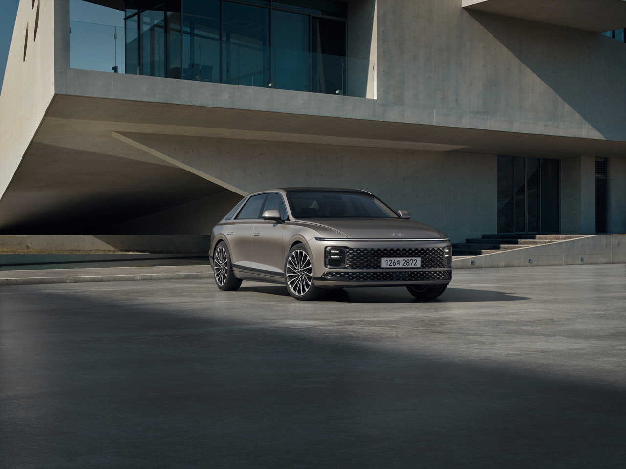 눈에 띄는 특징 중 하나가 길어진 전장과 휠베이스인데, C필러가 후방으로 과감하게 빠져있는 것을 보면, 넓은 2열 공간임을 알 수 있습니다. 자연스럽게 2열 공간에 타고 있는 사장님을 떠올릴 수 있을 것 같습니다. 또한 오페라 글라스는 1세대 그랜저(일명 각그랜저)의 감성을 자극하기 충분합니다.