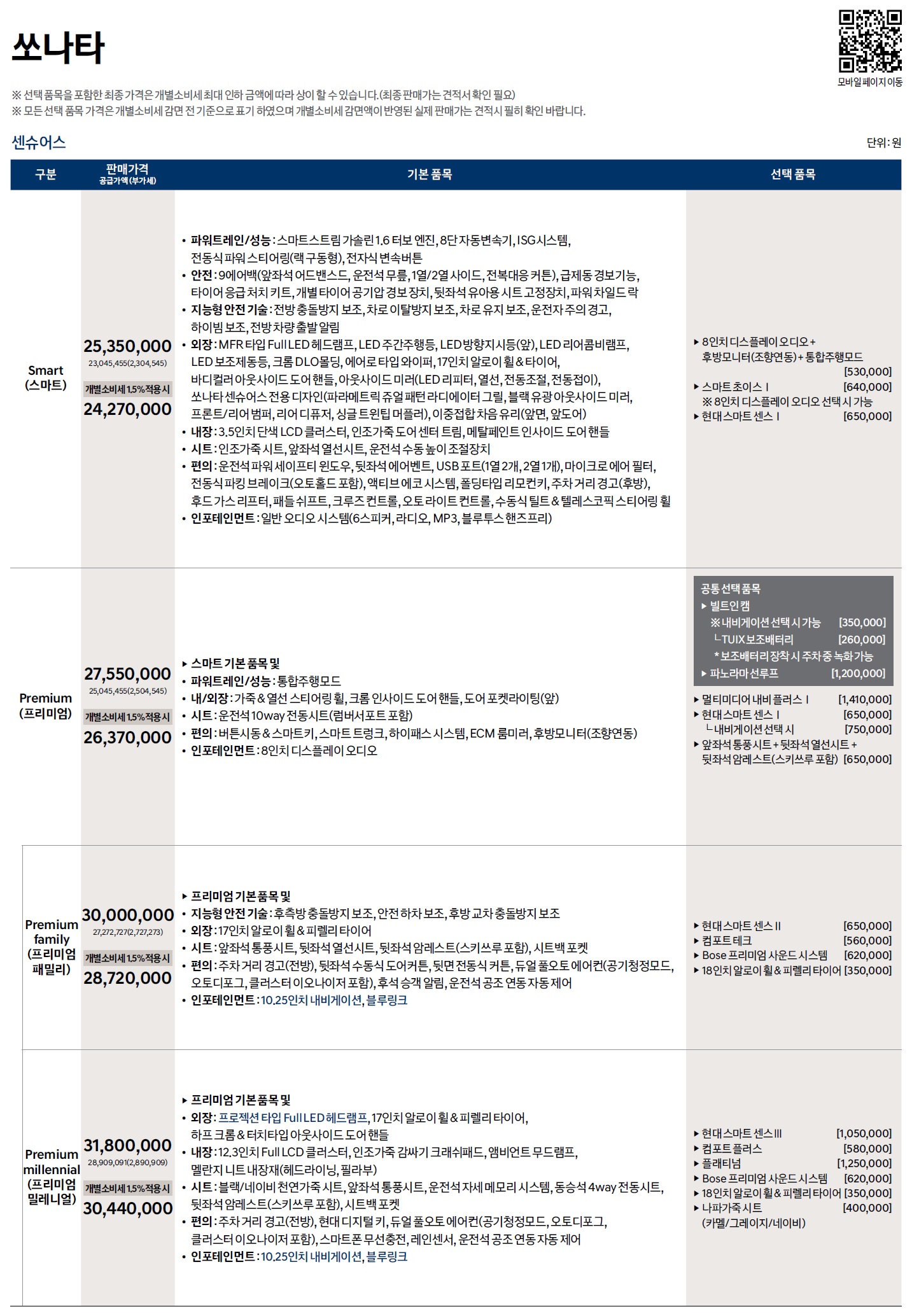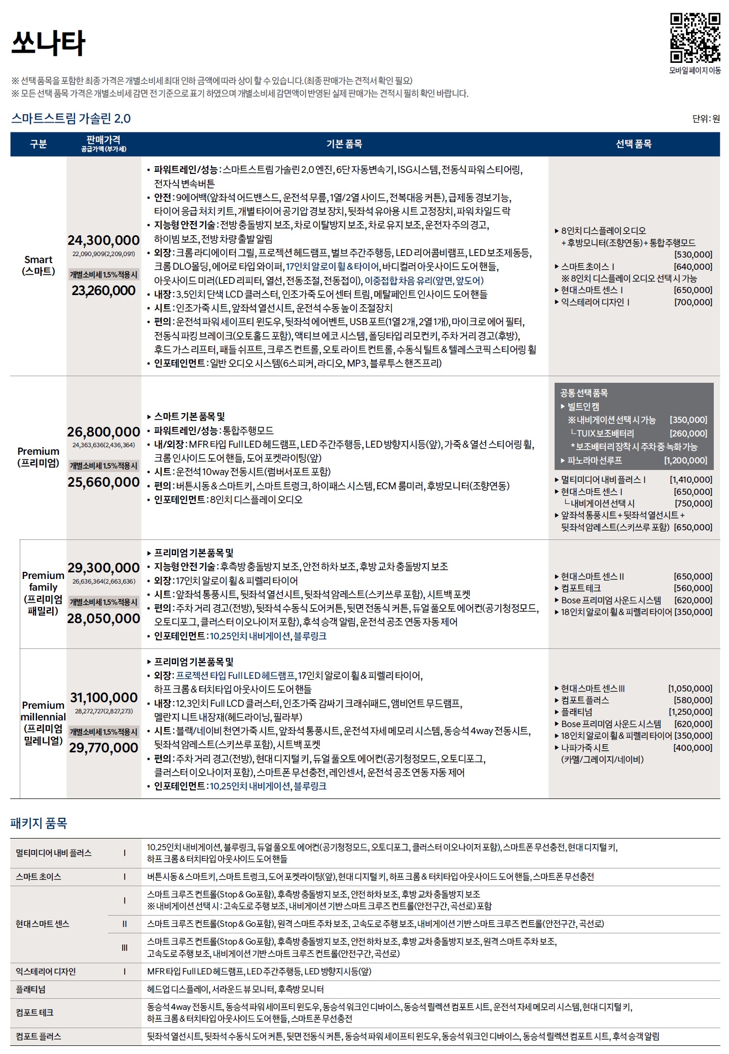 아래는 기존 쏘나타의 가격표이니 참고하시면 되겠습니다.(클릭하셔서 보세요!)